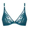 Sans armatures, le soutien-gorge triangle Feeling Myself offre une forme légère et résolument moderne, pensée pour les femmes sensibles. Habillant son décolleté profond d’une dentelle florale délicate jusqu’à l’épaule, il se pare d’effets de transparence très sensuels. Dans le dos, les bretelles se rejoignent en une forme graphique très originale.