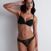 Pensé pour un effet invisible sous les vêtements, le tanga Into The Groove déploie une broderie moderne dans une coupe confortable. Mettant en valeur les hanches et le galbe des fesses, il se pare dans le dos d’une découpe en V sexy qui souligne avec sensualité le creux des reins.