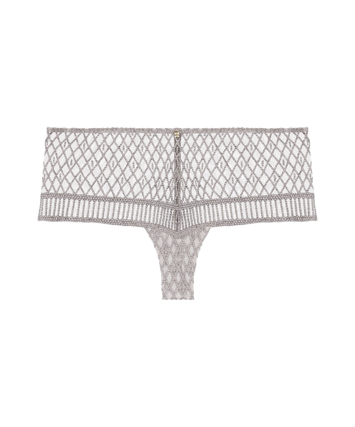 Pensé pour le confort et la séduction les plus absolus, le shorty Stardust Dream propose une coupe large sur les hanches pour mieux les affiner et légèrement échancrée derrière pour souligner le galbe des fesses. Entièrement en broderie transparente aux reflets précieux, il met subtilement en valeur les courbes féminines.