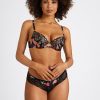 Avec sa forme jeune et moderne, dégagée sur les fesses pour un effet plus sexy, le shorty hipster Sweet Folk prolonge le haut de la jambe par une dentelle incrustée raffinée et s’habille d’un imprimé floral aux inspirations bohêmes en maille Lycra® fluide et légère qui devient tulle plumetis dans le dos pour des jeux de transparence, tout en séduction et en confort.