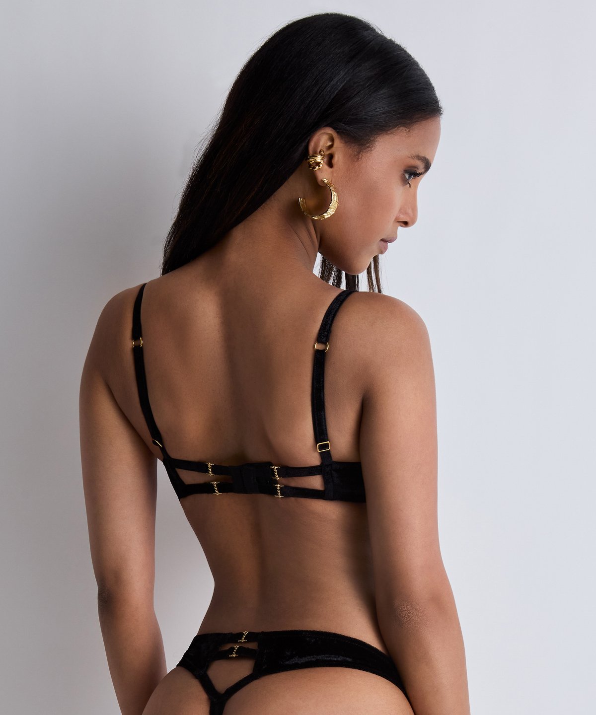 Pensé pour offrir un effet discret sous les vêtements, le tanga The night before associe l’élégance d’une dentelle sexy aux motifs modernes devant au confort d’un velours brillant, résolument tendance, dans le dos. Sur les côtés, des touches dorés précieuses mettent subtilement en valeur les hanches et allongent la jambe.