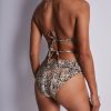 Offrant une forme couvrante jusqu’au nombril, légèrement gainante et emboîtante sur les fesses, le bas de maillot de bain culotte haute Fierce Spirit affine la silhouette et met sensuellement en valeur les courbes féminines. Résolument sexy, il se pare d’un lien entourant la taille pour une silhouette sophistiquée et séduisante.