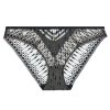 Couvrante, la culotte italienne Hypnolove sublime les hanches et le galbe des fesses de sa broderie graphique aux reflets dorés séduisants, rehaussant un tulle délicat et confortable. Derrière, une découpe graphique avec liens entrecroisés dans un esprit bondage subtil révèle sensuellement le creux des reins pour un effet résolument sexy.
