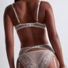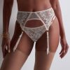 Tout en délicatesse, le porte-jarretelles Flawless Love souligne la taille et met en valeur les hanches. Sa dentelle ajourée au motif de fleur de lotus se déploie sur une résille graphique pour un jeu de transparence subtil. Orné d’un bijou doré raffiné, il complète la ligne avec sensualité et élégance.