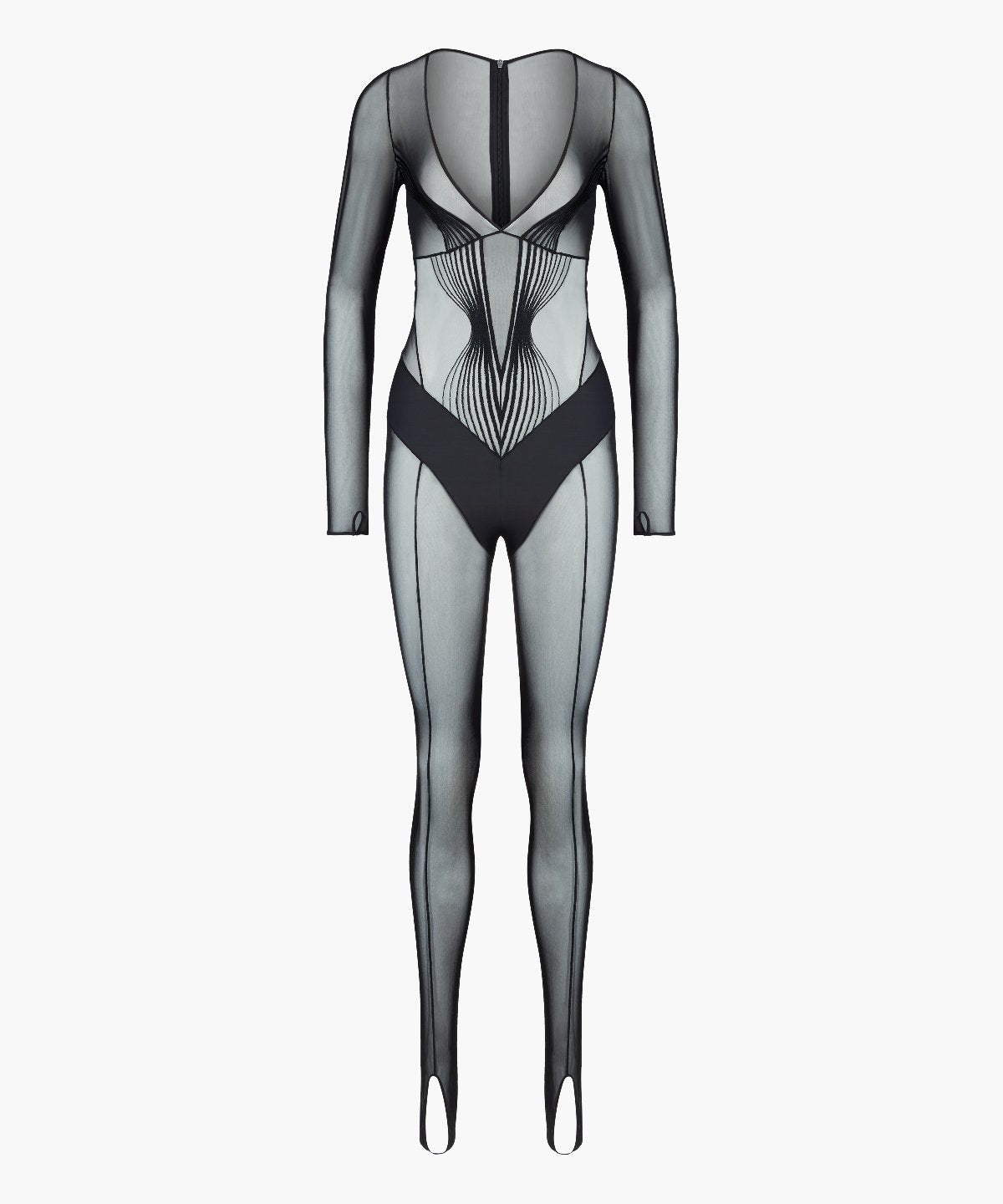 - Une pièce d’exception : le catsuit. Tout en transparence, ses jeux de découpe et sa forme fuseau épousent le corps tout en sensualité