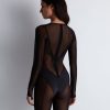 Spectaculaire et inédite, la combinaison catsuit Midnight Storm offre une forme fuseau avec zip invisible qui épouse parfaitement le corps. Tout en jeux de transparence sur le buste et les jambes, elle allie un tulle très doux à une broderie originale dont les lignes graphiques subliment sensuellement les courbes féminines.
