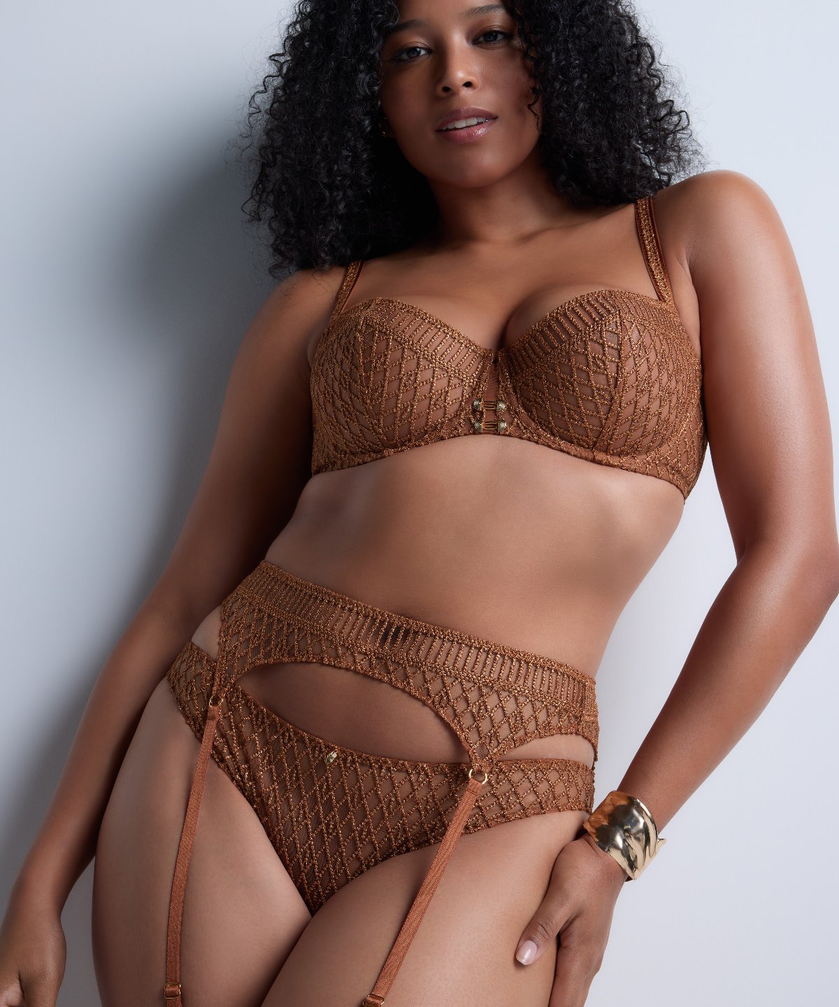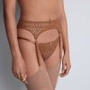 Pensée pour compléter cette collection exclusive ou pour apporter une touche de lumière à une parure de lingerie plus classique, le porte-jarretelles Stardust Dream habille la taille et les hanches de sa broderie précieuse aux motifs graphiques modernes. Sensuel, il se pare de détails d’anneaux dorés qui illuminent la peau.