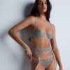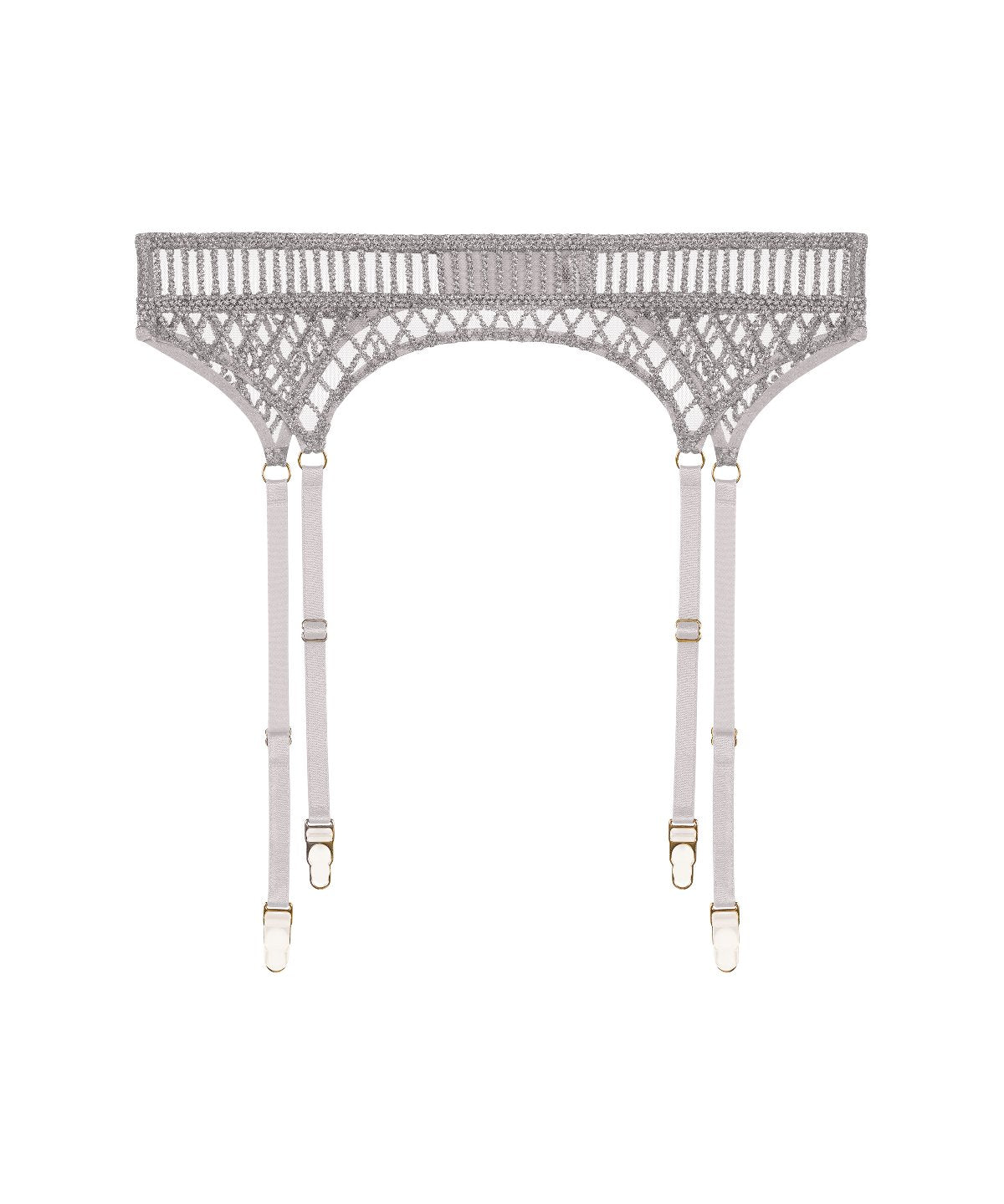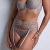 Pensée pour compléter cette collection exclusive ou pour apporter une touche de lumière à une parure de lingerie plus classique, le porte-jarretelles Stardust Dream habille la taille et les hanches de sa broderie précieuse aux motifs graphiques modernes. Sensuel, il se pare de détails d’anneaux dorés qui illuminent la peau.