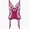 La guépière séduction de la ligne Trésor Infini rend hommage au corps féminin par des jeux de contrastes, entre broderie visuelle et tulle plumetis. La transparence s’invite dans cette pièce sensuelle qui galbe les courbes, tout en dessinant par son sursanglage une allure moderne et graphique.