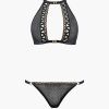 Résolument sexy, l’ensemble Unchain me up se compose d’un soutien-gorge triangle bralette sans armatures offrant un décolleté profond et structuré et d’une culotte mini-cœur au boutonnage très suggestif. Offrant tous deux des formes légères et modernes, ils voilent et dévoilent la peau dans un esprit à l’érotisme à peine dissimulé.