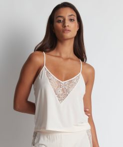 - Le confort et la douceur incomparable d’une maille composée d’un mélange de modal et de soie associée à la légèreté d’une laize dentelle florale toute en transparence