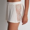 Fluide et ample, tout en maille ultradouce en soie, modal et élasthanne, le short Lazy Days offre une forme moderne et sexy, légèrement échancrée sur le haut de la cuisse pour un effet jambes interminables exclusif. Rehaussé sur les côtés de bandes en dentelle florale transparente et séduisante, il assure fraîcheur et légèreté, même au plus chaud de l’été. Doté d’une ceinture plate devant et élastique derrière pour un confort optimal, il se porte volontiers en sortie de plage avec un tee-shirt simple pour une silhouette décontractée ou en vêtement de nuit avec l’un des hauts de la même collection pour un style total look élégant.