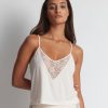 Le top fines bretelles Lazy Days déploie sa maille confortable et ultradouce en micromodal, soie et élasthanne dans une pièce sobre, modernisée par un décolleté en V profond que met en valeur une laize dentelle florale transparente. Dans le dos, il offre une coupe largement échancrée pour une allure subtilement séductrice. Modèle classique mais élégant et sexy, il se portera volontiers en guise de vêtement de nuit associé à l’un des bas de la même collection ou avec un jeans brut, en journée ou en soirée pour un style décontracté chic.