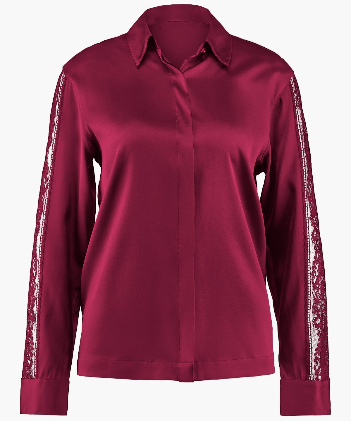 Conçu pour être porté de jour comme de nuit, le chemisier Midnight Whisper se prête à toutes les occasions. Entièrement en soie brillante et sensuelle, il se pare d’un élégant boutonnage rehaussé par un bouton doré sur le col. Sur les manches, des empiècements en dentelle sexy dévoilent la peau.