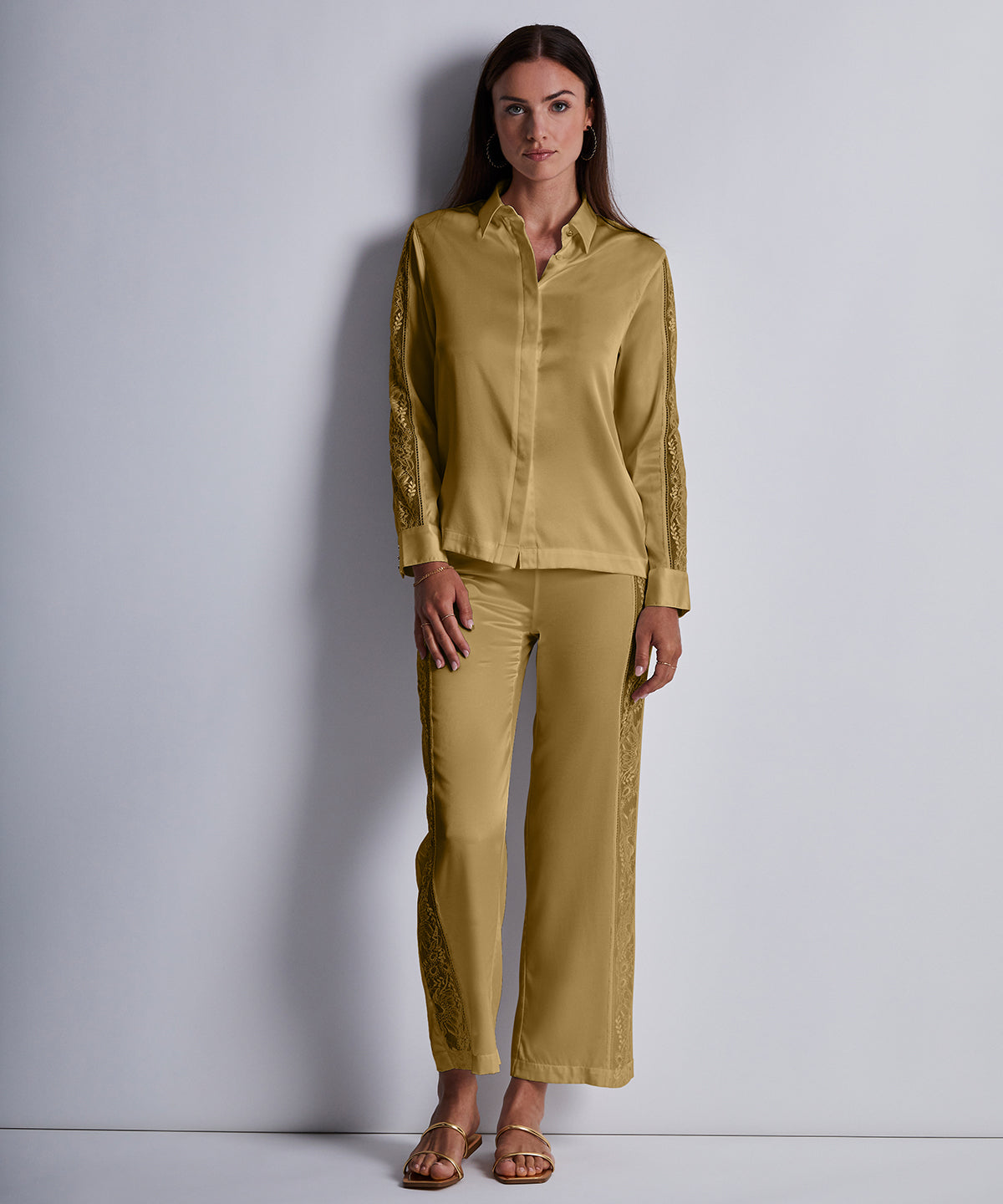 - Une chemise élégante qui dévoile la peau à travers ses empiècements de dentelle