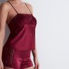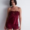Fluide, le top fines bretelles Midnight Whisper déploie sur le buste une soie sexy et confortable. Créant des effets de contraste entre transparence et opacité très sensuels, un empiècement en dentelle élégante vient se déposer sur le décolleté et se poursuit dans le dos dans une forme graphique très originale.