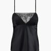 Fluide, le top fines bretelles Midnight Whisper déploie sur le buste une soie sexy et confortable. Créant des effets de contraste entre transparence et opacité très sensuels, un empiècement en dentelle élégante vient se déposer sur le décolleté et se poursuit dans le dos dans une forme graphique très originale.