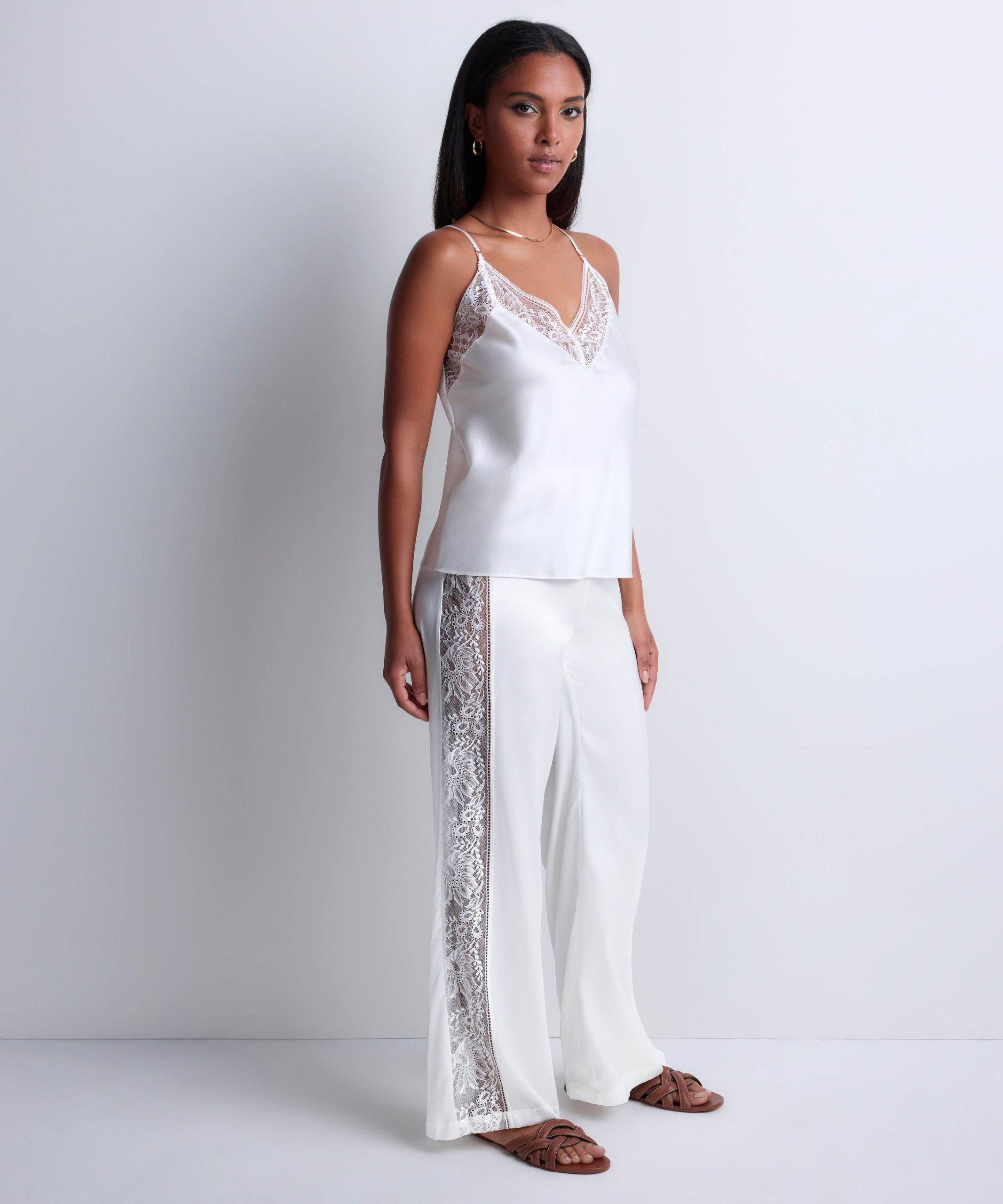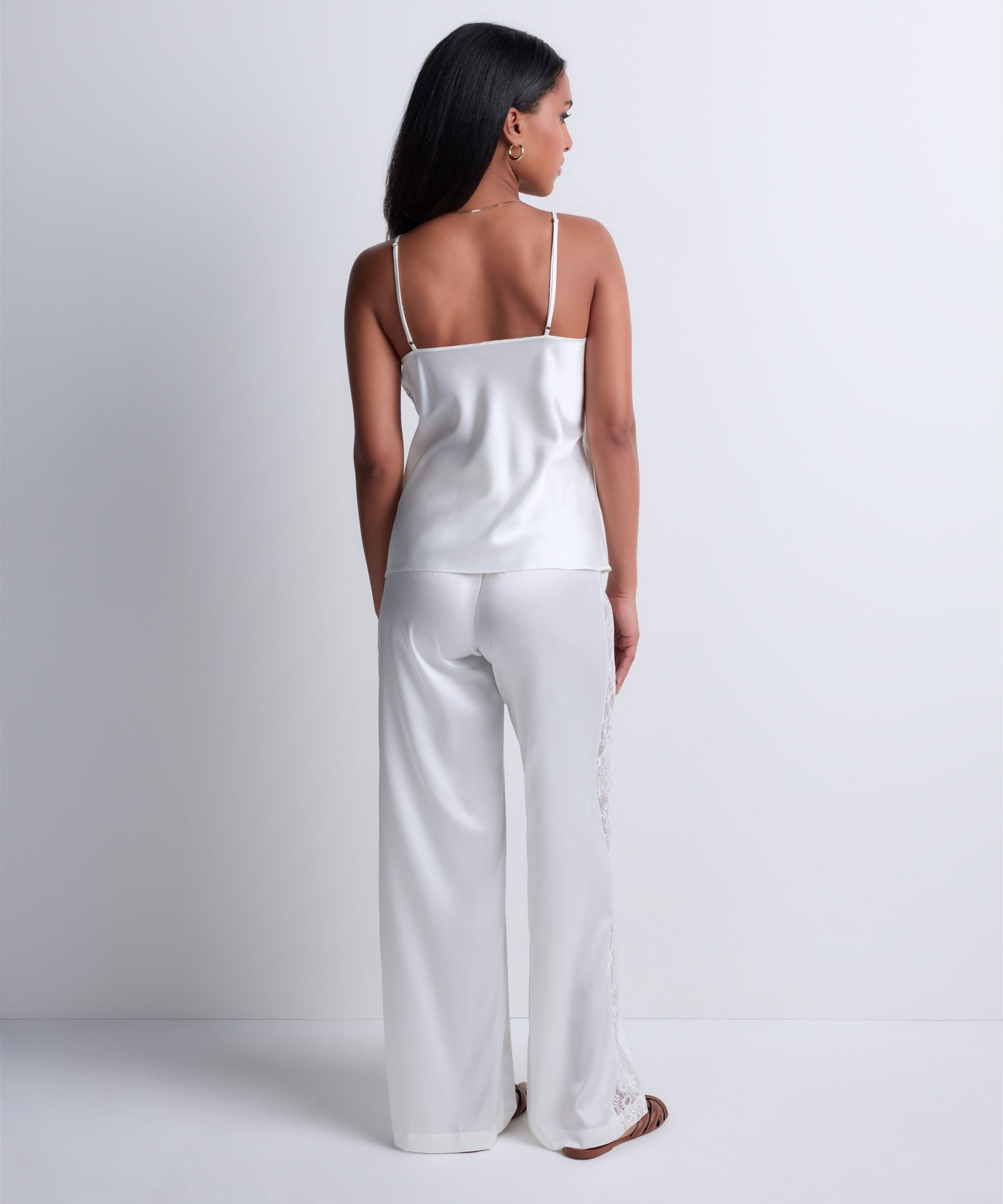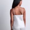 Alliant confort et élégance, le top fines bretelles Midnight Whisper déploie une soie luxueuse comme une caresse sur la peau. Pensé pour être porté de jour ou de nuit dans un jeu de dessus-dessous moderne, il se pare d’un empiècement en dentelle qui dévoile le décolleté pour une sensualité affirmée.