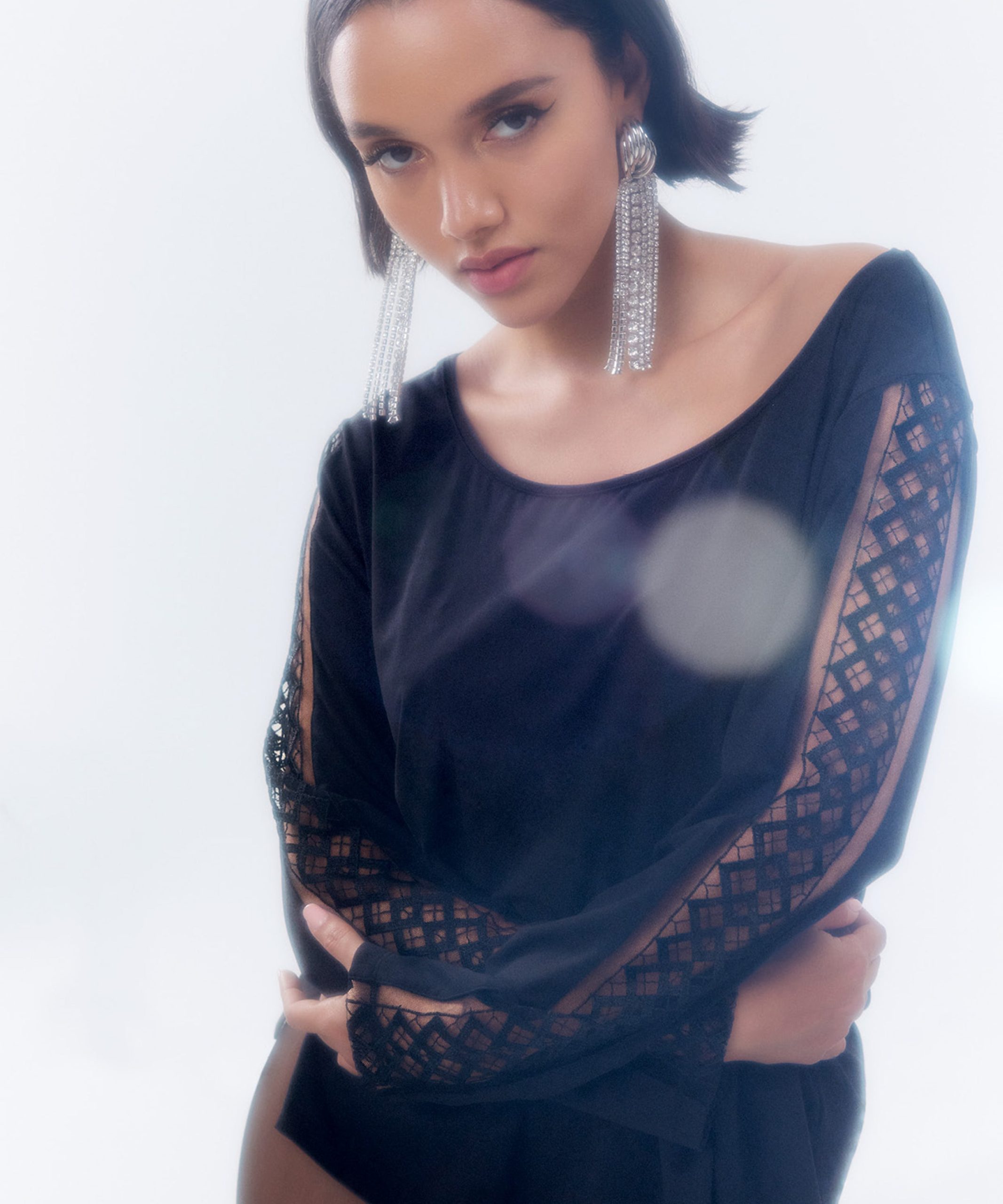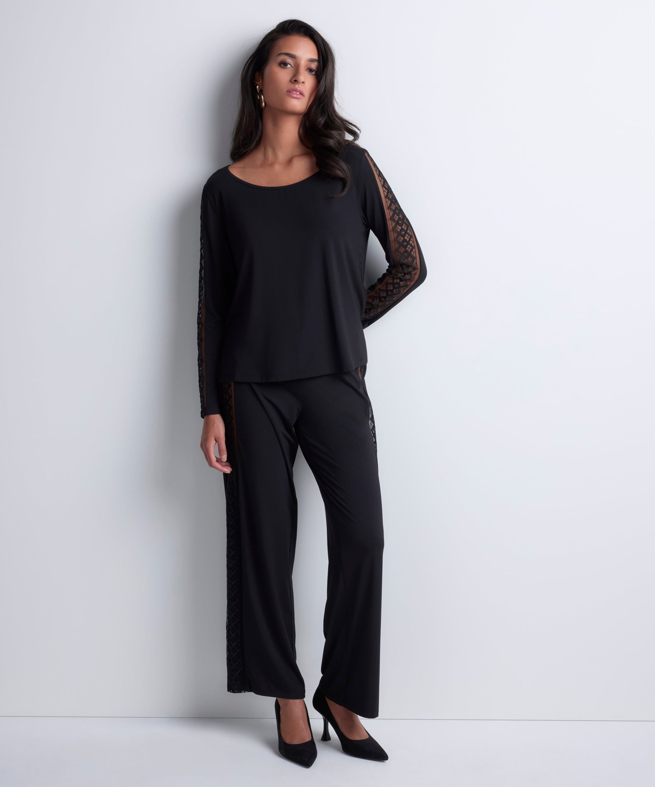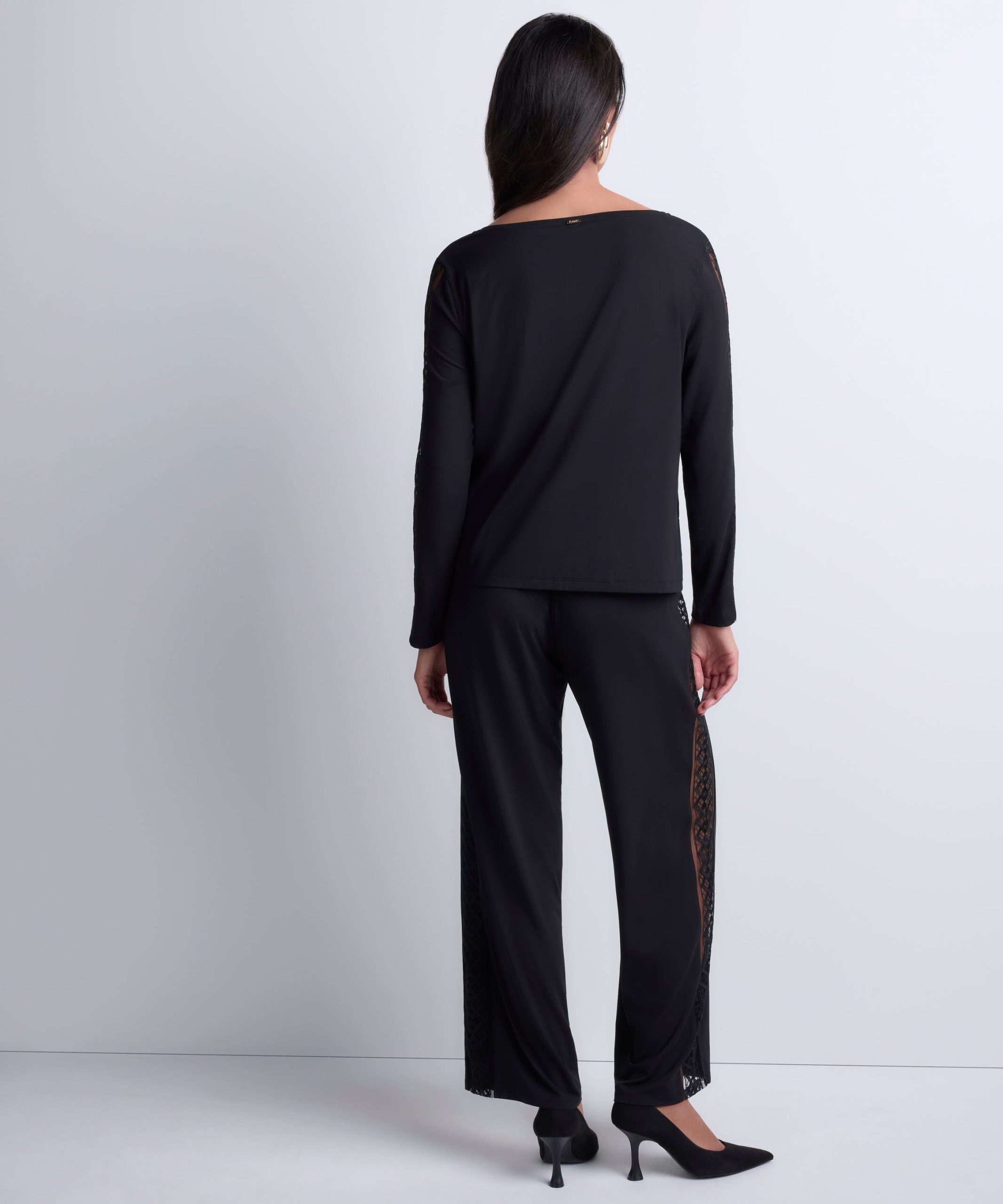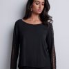 Avec son col rond sobre et ses empiècements tout en jeux de transparence qui dévoilent sensuellement les bras, le top manches longues Sweet Obsession allie élégance, confort et allure sexy. Idéale pour les moments de détente, sa coupe droite et sa matière très douce enveloppe le corps d’une douceur infinie.