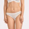 La culotte brésilienne marie le confort à la séduction par un mélange de broderie Cornely qui laisse place à un dos en maille clean-cut. Le creux des reins se dévoile subtilement sous une bande de guipure ajourée pour un modèle couvrant et séduisant.