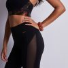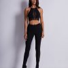 - Un legging fuselé dévoilant la jambe avec son empiècement de tulle sur le côté. Ceinture plate et haute pour le confort