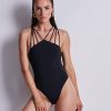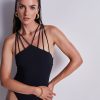 - Nageur souple avec des jeux de liens fins sur le devant et dans le dos : une pièce sexy et élégante