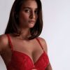 Avec ses coques offrant confort, couvrance et maintien, le soutien-gorge plunge coussinet Cœur à Corps rapproche les seins dans un effet push-up sexy. Il associe un séduisant galon floral à bord droit et une guipure française raffinée qui se prolonge jusque sur les épaules pour un effet moderne et graphique.