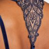 Avec sa broderie brodée bleu profond et champagne rosé habillant tout le décolleté et se prolongeant jusque sur un motif amovible dans le dos, le triangle plunge Cœurs Enlacés assure un maintien optimal, tout en offrant un soutien-gorge plongeant, confortable et sexy qui se laissera volontiers dévoiler avec audace sous une chemise ouverte ou un haut dos nu.