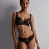 Le soutien-gorge Plunge Coque dépose sur la poitrine une caresse sexy et raffinée. Les seins se galbent dans un décolleté bombé généreux, ornés de galons de dentelles qui se dessinent sur la peau. Les bretelles s’enrichissent d’écailles délicates, ultime détail de cette pièce séduction.