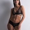 - Véritable signature de la ligne, un motif de liens croisés pare les basques des soutiens-gorge en revisitant les codes du bondage
