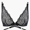 Dessinant sur la peau les motifs graphiques de sa broderie pour un effet très sexy, le soutien-gorge triangle ultra plunge L’Indomptable offre un décolleté profond et sensuel. Inspiré des codes du bondage, un jeu de liens croisés pare le dessous de la poitrine en écho aux triples bretelles du dos.