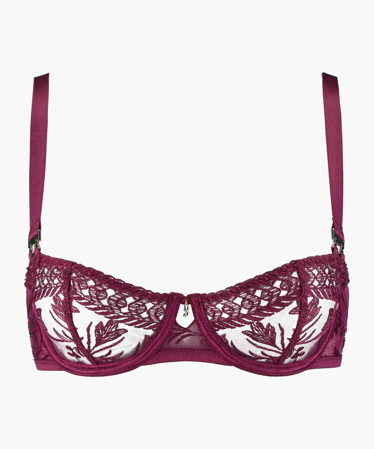 - Détail fantaisie avec le jeu d’un double départ des bretelles, associé à un bijou sur le soutien-gorge corbeille armatures
