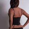 - Un magnifique bustier complète la ligne, avec ses bonnets doublés en tissu opaque. Cette pièce exceptionnelle se porte aussi bien en pièce de lingerie qu’en pièce d’extérieur. Une forme ultramode !