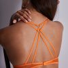 Confortable et moderne, le soutien-gorge triangle Pure Vibration sans armatures offre un décolleté en V plongeant résolument sexy, souligné par une broderie en arabesque qui habille la poitrine et s’étend jusque sur le buste. Derrière, un jeu de bretelles croisées sculptural structure le dos dans un effet graphique très original.