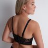 Sans armatures, le soutien-gorge triangle brassière confort Rosessencedéploie une dentelle florale élégante de l’épaule à la taille dans une forme bustier moderne qui assure un maintien optimal. Sexy, il offre un dos largement ouvert et un décolleté profond, souligné à l’entregorge par un bijou doré avec strass élégant.