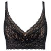 Sans armatures, le soutien-gorge triangle brassière confort Rosessencedéploie une dentelle florale élégante de l’épaule à la taille dans une forme bustier moderne qui assure un maintien optimal. Sexy, il offre un dos largement ouvert et un décolleté profond, souligné à l’entregorge par un bijou doré avec strass élégant.