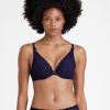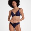 Avec sa forme plongeante, le soutien-gorge Triangle Plunge Rosessence offre un décolleté spectaculaire tout en chic et raffinement. Son bijou à strass Swaroski illumine le coloris Nocturne bleu profond tout en dentelle jacquard, telle une étoile dans la nuit.