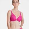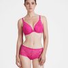 Le soutien-gorge triangle plunge confort Rosessence se décline jusqu’au bonnet F. Le décolleté plongeant est rassurant grâce aux armatures du modèle, et l’entregorge est sublimé par un joli bijou doré avec strass Swarowski.