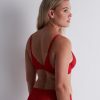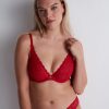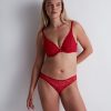 Résolument moderne, le soutien-gorge triangle armatures Rosessencehabille de sa dentelle florale raffinée tout le décolleté, lui conférant une profondeur très sexy accentuée par un bijou à l’entregorge. Disponible jusqu’au bonnet G, il offre un dos travaillé en « tour Eiffel » qui assure confort et maintien au quotidien.