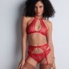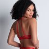 Sans armatures, le soutien-gorge brassière Rules of Attraction déploie sa broderie originale jusqu’à l’épaule, mise en valeur par une attache tour du cou résolument tendance. Profond et sexy, le décolleté est souligné par un bijou doré à l’entregorge. Derrière, les bretelles offrent un effet graphique qui dévoile sensuellement le dos.