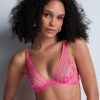 Tout en jeux de transparence, le soutien-gorge triangle armatures Rules of Attraction offre une forme sexy et confortable. Habillant tout le buste de sa broderie florale exclusive, il présente un décolleté profond résolument sensuel, encadré par des anneaux dorés au départ des bretelles et un bijou résolument moderne à l’entregorge.