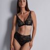 Disponible jusqu’au bonnet E, le soutien-gorge triangle ultra plunge Rhythm of Desire offre une forme couvrante, confortable et séduisante. Déployant largement sa dentelle végétale élégante jusqu’aux épaules pour un décolleté profond, il se pare à l’entregorge d’un jeu de laçage très sexy surmonté par une touche de doré lumineuse.