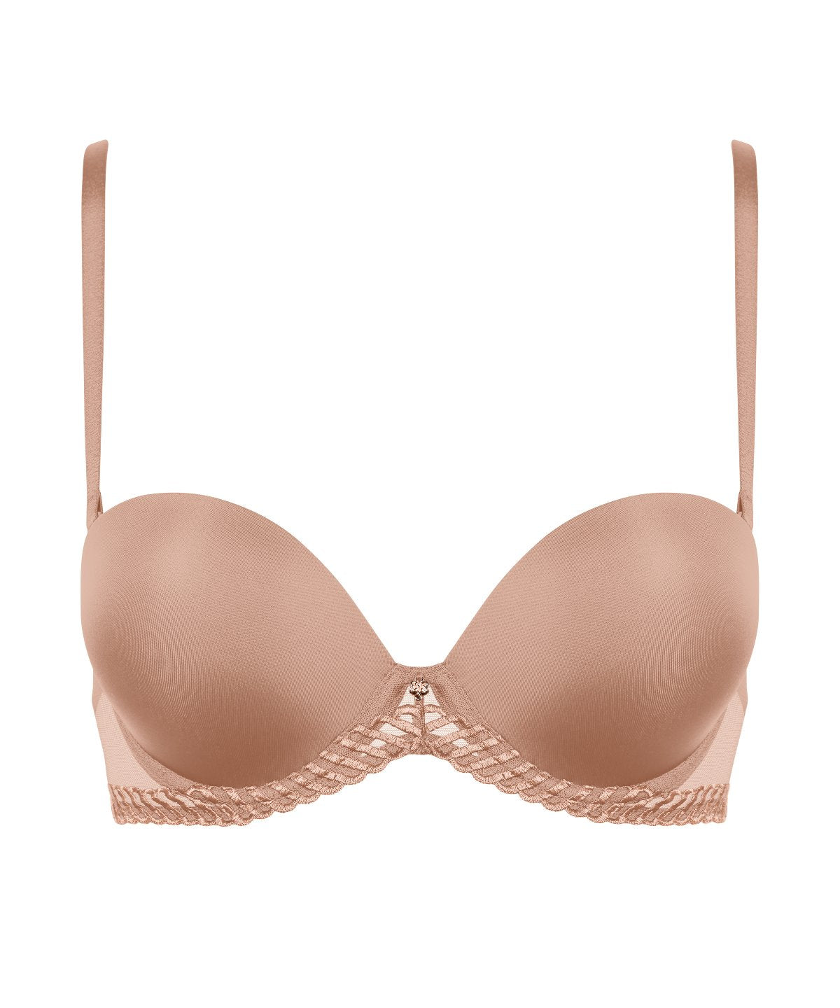 Versatile avec ses bretelles amovibles et repositionnables, le soutien-gorge bandeau plunge Sheer Emotion offre une forme confortable et sexy, qui saura se faire discrète sous les vêtements. Alliant une maille douce, un tulle transparent, une broderie graphique et des détails dorés, il confère à la silhouette un effet structuré raffiné.