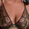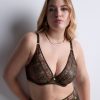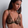 Moderne et confortable, le soutien-gorge triangle armatures Sound of Heart déploie sa broderie élégante aux fils lurex chatoyants haut sur le buste. Tout en jeux de transparence et de brillance, il offre une silhouette audacieuse, à l’entregorge illuminé par un bijou doré qui accentue la profondeur, très sexy, du décolleté.