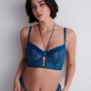 Résolument graphique et tout en jeux de transparence, le bustier Sumptuous Waves souligne la poitrine de son décolleté carré très sexy, habillé d’un collier amovible. Disponible jusqu’au bonnet F, il offre maintien et confort grâce à sa basque avec armatures, dotée d’une ouverture qui dévoile sensuellement la peau à l’entregorge.