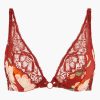 Offrant un décolleté plongeant très sexy au maintien et au confort parfaits, le soutien-gorge triangle avec armatures Sweet Folk déploie avec délicatesse sur la poitrine une dentelle incrustée raffinée, un imprimé floral exclusif en maille Lycra® légère et un anneau doré éclatant à l’entregorge pour incarner une féminité qui s’exprime en toute liberté.
