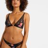 Avec son ouverture sexy sur l’avant et sa dentelle habillant le décolleté pour rehausser un motif floral exclusif, imprimé sur une maille en Lycra® si légère qu’elle se fait oublier au porter, le soutien-gorge triangle sans armatures Sweet Folk est un modèle de douceur, de finesse et de souplesse pour un effet de confort absolu, propice au sentiment de liberté que procure cette collection.