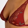 Avec son ouverture sexy sur l’avant et sa dentelle habillant le décolleté pour rehausser un motif floral exclusif, imprimé sur une maille en Lycra® si légère qu’elle se fait oublier au porter, le soutien-gorge triangle sans armatures Sweet Folk est un modèle de douceur, de finesse et de souplesse pour un effet de confort absolu, propice au sentiment de liberté que procure cette collection.