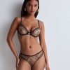 - Bretelles décorées d’une bande brodée sur le soutien-gorge plunge coque