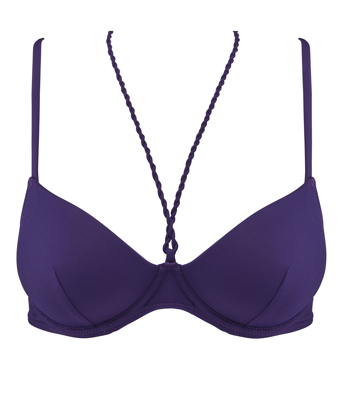 Disponible jusqu’au bonnet E, le haut de maillot de bain plunge coque Summer Journey offre un effet push-up naturel. Assurant confort et maintien grâce à ses bretelles droites, joliment divisées en deux dans le dos, il habille son décolleté ouvert, profond et sexy d’un jeu de liens tressés très original.